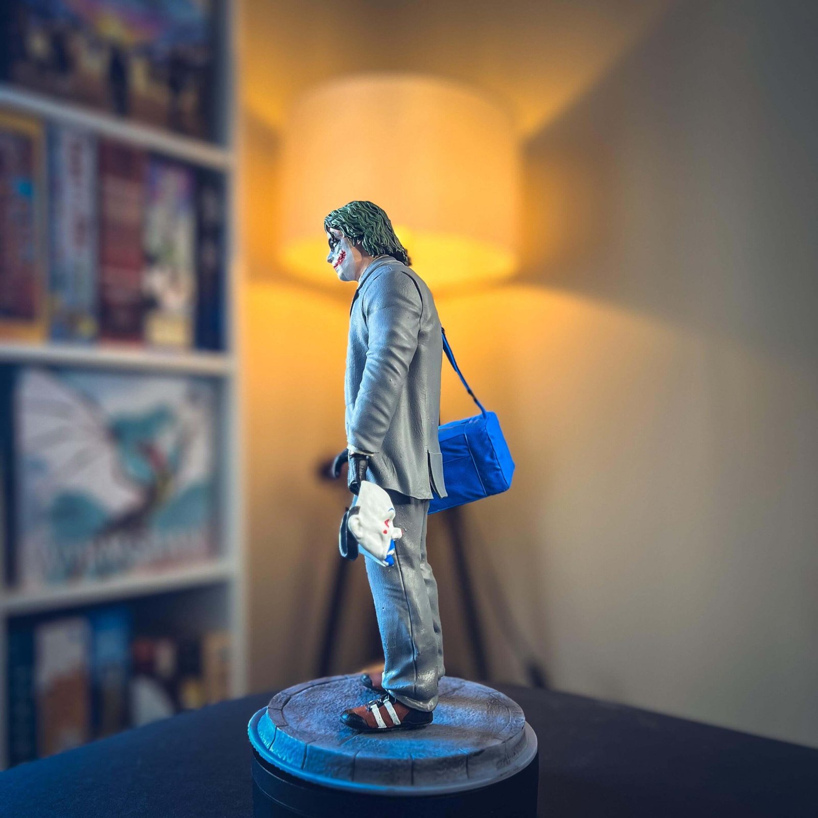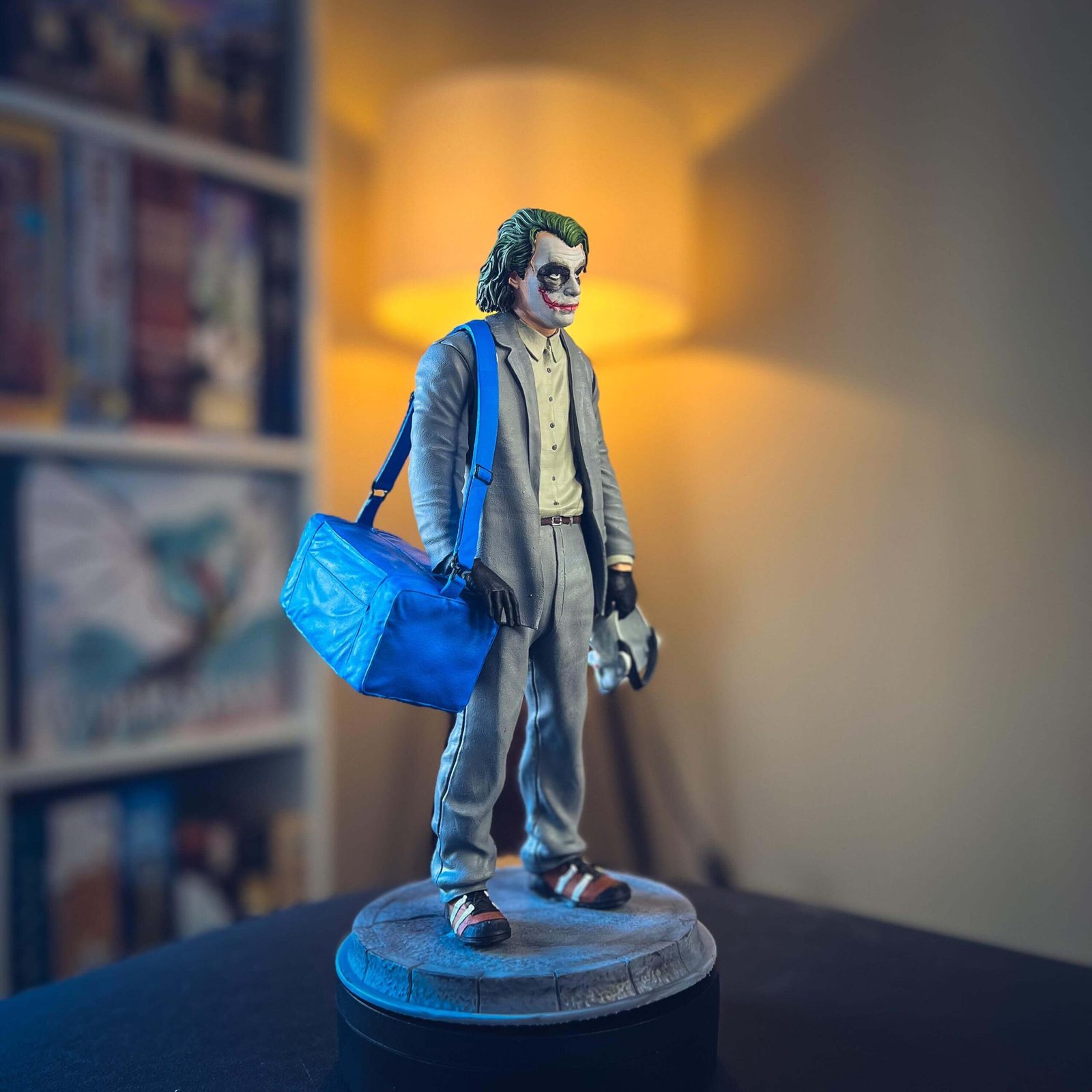 Heath Ledger’ın sinema tarihine geçen Joker performansının en gizemli anlarından biri, Figuart Collectibles kalitesiyle hayat buluyor. Banka soygunu sahnesindeki o soğukkanlı duruşu yansıtan bu figür, her detayında profesyonel ustalığı barındırıyor.